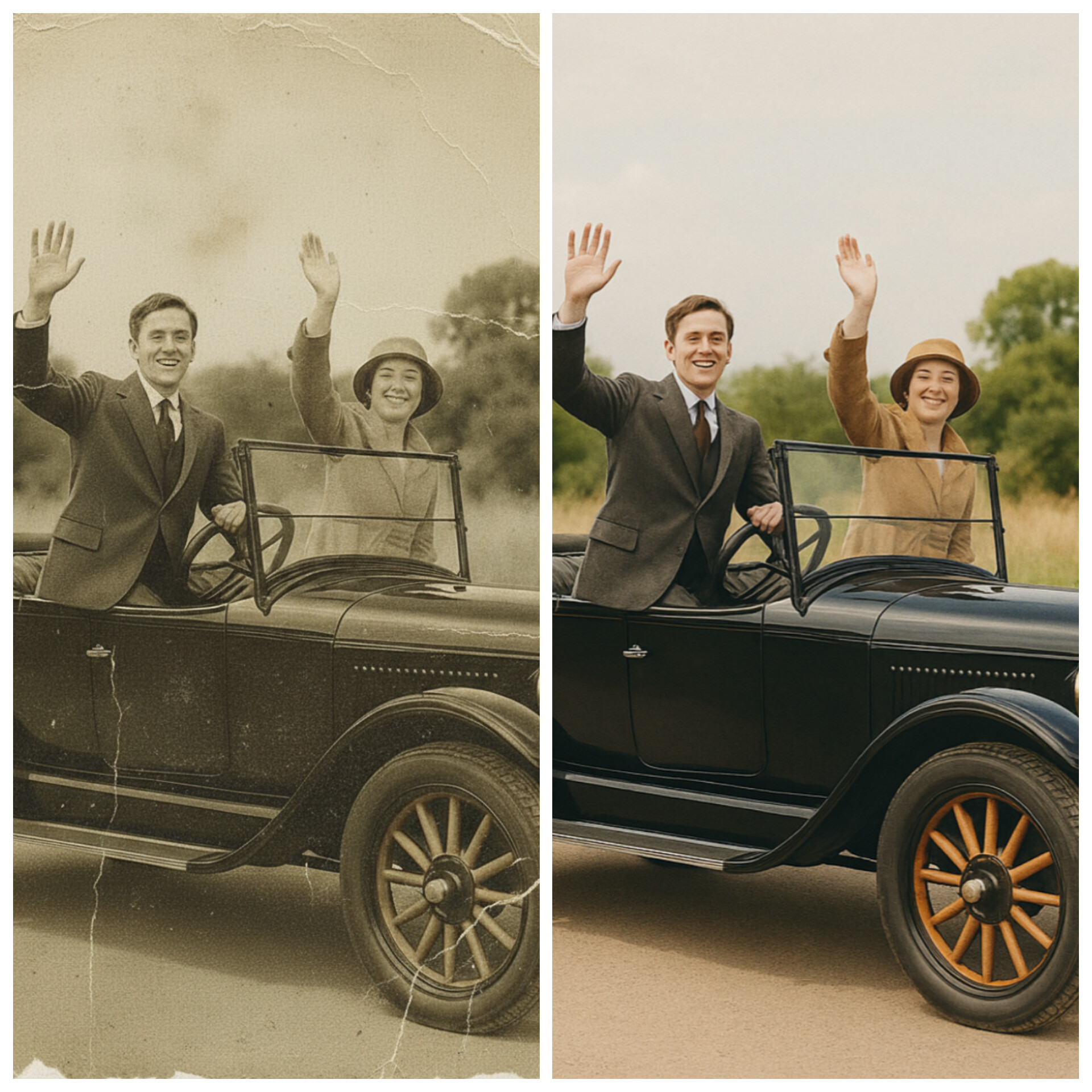I staré fotografie si zaslouží druhou šanci. Opravíme škrábance, praskliny i zažloutlé tóny, obnovíme barvy a vyčistíme drobná poškození. A pokud si to budete přát, dokážeme i z černobílé fotografie vytvořit barevnou – aby vaše vzpomínky